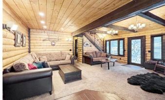 It offers four bedrooms with queen size beds, 2 full baths, sofa bed in family room and a king size lounge bed in loft. Cabin is equipped with wifi, laundry room with indoor washer and dryer. A.C and heating throughout. Family room, loft and master bedroom is equipped with there own smart t.v. Upstairs offer’s loft with masterbedroom and private bath. Baby gates are installed on stairs since safety is our priority. This Cabin is perfect for that family or group of friends who wants to make unforgettable memories. Outside patio table has seating for 6 plus it has a long bench for extra guest. Outside is equipped with security cameras and they are not monitored and are there for security purposes. Offers 8 parking spaces. Backyard is all fenced for your kids to run around and has 2 spacious decks for a get together BBQ, has gas and charcoal grill.