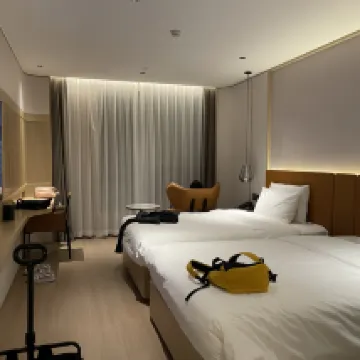 Secondly, it was noisy. The surrounding environment was loud, and the windows weren't soundproof. In the morning, I heard several loud 'rumble-rumble' sounds, like steel from a construction site. On top of that, there was noise from the hotel itself. I was woken up past 1 AM by the distinct sound of water being used upstairs, first by one person, then another—'whoosh-whoosh-whoosh.' My husband and I couldn't believe how loud it was.