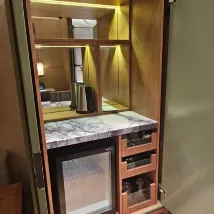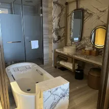 Friendly personnel. The room is good, clean and spacious; a bit mold in a shower though. Nice interior solution with a bathtub. We stayed in rainy day, unfortunately, umbrellas were not available (all were taken out and no umbrella in the room). Breakfast is relatively simple, mostly Asian style, kind of decent. Will I stay there again? - not sure; will depend on competitors’ offers; it feels a bit overpriced.