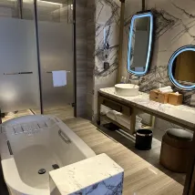 Good and quality 5-star hotel. Room is big, beds are comfortable, beautiful bathroom. Only minus of our room - the view wasn’t very good. The location is close to the parks, but far from the center. Good and tasty breakfast. Only fruits assortment was poor. The