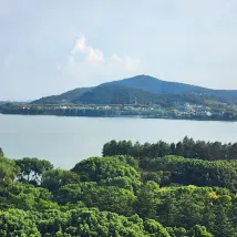 Very nice hotel with good service. The begining was a bit bumpy as the room was not ready when we arrived at 3pm and information for all services were not given( Breakfast/ Dinner/ Opening hours) . However the staff was nice especially at the restaurant with Xiao Yang. The room has a beautiful lake view. The location is a bit far from the city center but anyway the Typhoon didn't allow us to go outside. Swimming pool is clean and not many people... We enjoyed and left the hotel rested.