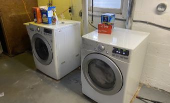 The house has 2 bedrooms. The main bedroom is a queen bed and the 2nd bedroom doubles as an office with a full size futon. The living room and bedroom both have smart tvs The kitchen is open to the living room and a dining room allows for entertaining. You will also have access to a washer and dryer in the house.