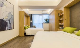 位置可以,樓下就是商場,房間也很好,採光視野都很不錯,老闆免費給升級2米大床,床墊、床都很不錯,衞生也很好,體驗很不錯。