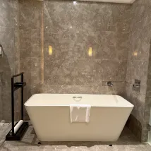 • Bathroom: The separate bathtub was a definite highlight for me! The marble-patterned decor exudes luxury, and taking a bath with aromatherapy is simply a therapeutic moment for city dwellers. The quality of the bath products is also excellent, making for a very comfortable experience.