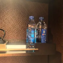The room amenities were terrible. The faucets were broken, and the constant dripping from the floor drain at night made it impossible to sleep. The toilet was old and not a smart toilet, and there were no disposable toilet seat covers. The snacks were also very sparse: one small bag of rice crackers, one small bag of donuts, and two bottles of mineral water, along with two generic coffee sticks.