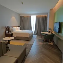 Response from Property: Thank you very much for your recognition of the hotel service and facilities,Holiday Inn Xi’an Chanba with an excellent position, conveniently located in Shibo Avenue, the hotel approaches to Silk Road International Convention Centre and Sasseur Xi’an Outlets. With the New Age of Holiday Inn new design, inviting warmth fulfill the modern and concise room, enjoy ease atmosphere with simple and affordable fusion delicate in Hi Bowl All Day Dinning Restaurant. Holiday Inn Xi’an Chanba is your prefect choice to business and Family travel as well as enjoying leisure.