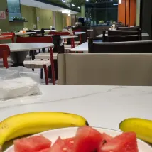 the buffet breakfast is sumptuous and delicious. there are lots of fruit. the seats are comfortable.