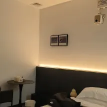 The lobby furnishings were quite stylish, but once you entered the room, it was awful. There were watermarks on the ceiling from a leak. Even though I had chosen a non-smoking room, there was still a lingering smell of smoke and mold. The room was quite large, but the walls were filthy.