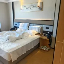 The bed and pillows are very soft and comfortable, the room is clean and tidy, and the room is continuously occupied. The housekeeper will clean it every day, and even the pajamas on the bed will be folded and placed on the pillow. The service attitude of the front desk staff is very good. The front desk will also assist in collecting and sending express delivery! There is also a small refrigerator to ice fruit/drinks/beer.