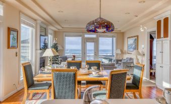 Experience the beauty of Yachats’ rocky shoreline at Arbor House South, a modern, well-appointed home designed for comfort and relaxation. With three ocean-facing bedroom suites, this stunning home offers breathtaking views, ocean breezes, and the soothing sounds of surf. For the holiday season, the home is beautifully decorated with festive Christmas décor, creating a warm and inviting ambiance for your coastal getaway.
