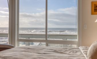 Each bedroom suite provides privacy and comfort: a king bedroom, a queen bedroom, and a suite with two queen beds, all with private bathrooms. The home’s thoughtful layout makes it ideal for groups or families. Located near the 804 Trail, which passes directly in front of the house, you can take a scenic walk along the dramatic oceanfront to Yachats’ charming downtown, filled with restaurants, bakeries, coffee houses, and quaint shops.