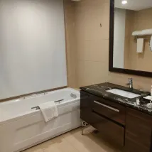 From the moment I stepped off the bus, I felt the attentive service – a concierge smiled and helped with my luggage. Check-in was quick, and they even upgraded my room for free! The room was sparkling clean, the bedding was soft and comfortable, and I could see the city view while soaking in the bathtub. I especially loved their smart control system; the lights and curtains could be adjusted with a single touch. The breakfast was so plentiful it felt like brunch, and the freshly cooked local noodle stall made me eat two bowls. The complimentary gift upon check-out was so thoughtful; I've already recommended it to all my friends. This is definitely a treasure hotel I'll stay at again and again!