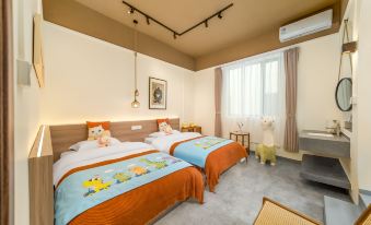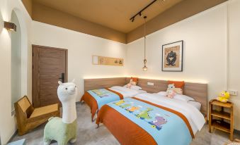 大半夜的臨時選的,還好有房,除了沒有圖片上的羊駝🦙以外,其他的都相符,雖然在西街裏,但是鬧中取靜,除了樓下巷子裏過路的行人以外,一點也不吵,整棟樓三層,二三樓都是衹有三個房間,一樓衞生間旁邊有一個,頂樓還有一個晾曬台,樓道里小魚的燈也很好看,要説美中不足的話就是沒有電梯啦,一開始還想着説行李就放在一樓了,但是後面和小朋友分了兩三趟把行李箱裏的東西分批次拿到房間裏,在把相對提的動的行李箱拿上房間的。房間門也是密碼鎖,挺好的,下次如果有機會去還住這裏