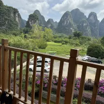 This is my first time writing a review for an accommodation, and my experience at Xining Pavilion was even better than most. It was incredibly cozy and quiet, with a stunning mountain view from the balcony. There's also a small path leading to a cave halfway up the mountain. It's also very close to most of Yangshuo's attractions, and you can rent electric scooters right there.