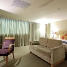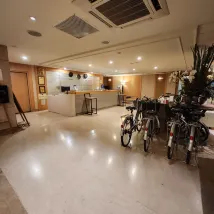 Shared building with other hotel. Old hotel with dirty carpet and chairs. The lift has a strong stench. We didn’t enjoy the stay at all. Should have gotten a better stay. Won’t be bad for sure.