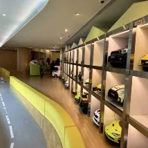 A paradise for children, with a great selection of toy cars and a slide to play on. The room is very spacious, and they even have separate adult and child-sized toilets.