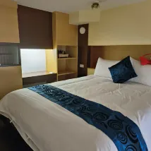 First of all, I stayed in Jiaoxi for two nights and booked two different hot spring hotels through Trip.com. After trying them out, I felt that the price of this hotel was not very attractive! The same and similar accommodation is cheaper and better than it! The location is close to the city center! But the store has no signboard and no reception desk! I couldn't find it even on Google! I asked the building manager and found out it was this residential building! After going through the administrator, I found the store receptionist to get a room! The store displayed a contact number, but no one answered after multiple calls! The order cannot be confirmed! I'm a little worried that there will be a communication error between the platform and the store and I won't have a room! It was originally a 2-person room with a high ceiling, but the store was very helpful in upgrading it to a 4-person room with a high ceiling! But the room is a high-ceiling room, and I would rather have a big sofa than a double bed! Because it’s not enough for two people! The view from the room is okay, you can soak in the hot spring while watching the night view! There is no bottled water, tea bags or coffee bags in the room! Make your own water to drink! But the water pot is old...and there are no disposable slippers! We only have reusable rubber slippers. It’s up to you whether you want to wear them or not! The disposable toothbrush, shaver, comb and shower cap are all included! There is a router in the room but WiFi cannot access the Internet! The building data cable should not be connected! Just ask the receptionist and tell him to just find a signal without a password and connect to it! But not at all! As the photos show, it is wrong to have WiFi in the room! As a foreign tourist, this is extremely unfriendly! Since there is no reception desk, temporary check-in is not possible! It is inconvenient to eat, drink, walk around and buy souvenirs in the city after handing over the house. The price is more expensive than other places, but not better than other places! I won’t order again next time!