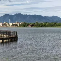 Opening the window revealed a beautiful expanse of water. Waking up to the gentle glimmer of the lake and birdsong in the morning, and watching the sunset paint the water golden-red in the evening, instantly washed away the day's fatigue. 🌇