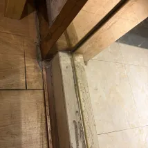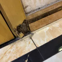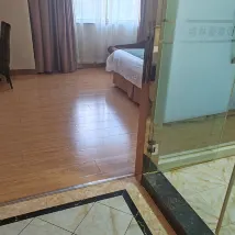 Unfortunately, my stay was far from ideal. The hotel's facilities are noticeably aging, with visible damage and stains in many areas, falling short of what one would expect from a quality establishment. The tile grout in the hallways was caked with dust, and the wooden baseboards in the corners were severely peeling, exposing the underlying material. Inside the room, the wooden floor was heavily worn, with dents and cracks in some sections, detracting from its overall appearance. The ceiling air vent was dusty, clearly indicating a lack of long-term cleaning. The bathroom door frame and walls also showed obvious stains and mold, giving off an impression of age and neglect.