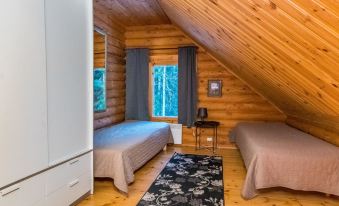 A round log cabin built in 2001, located in Haveri Holiday Village in Viljakkala, Ylöjärvi. Kyrösjärvi Lake is 250 meters away via road, with a shared beach available for guests. A rowing boat is available for common use at the beach for guests of the Kaivoskartano and Kultakartano cabins.