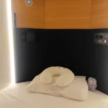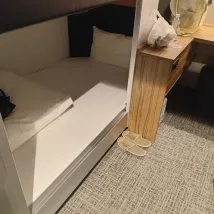 The hotel is new, very clean, and comfortable. Automated check-in is available, and earplugs, slippers, towels, and water are provided. The staff are friendly and polite. The high-end, technologically managed capsule rooms offer privacy and a comfortable rest. Lockers are provided for hanging clothes and securing valuables; larger luggage can be secured with chains. Bedside amenities are complete.