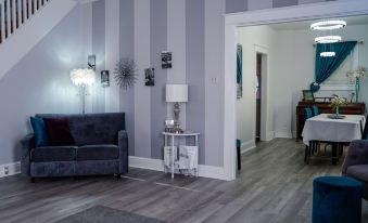 You’re going to want to take advantage of this cutie set in a quiet neighborhood on the outskirts of the City of York. It’s quaint brick exterior with updated landscaping and porch swing are deceiving as to what lies inside. A manicured backyard is yours for the lounging. Stepping inside the front door presents a modern metropolis feel with the recently renovated greys and white tones. Bling accents, mirrors, and chandelier in the living and dining rooms set you in a posh atmosphere for relaxing or entertaining. A fully equipped kitchen is available for those home cooked meals. A laundry room and half bath are also located on the first floor for easy access and utilization. Walking up the original hardwood steps guests will encounter three nice-sized bedrooms sleekly furnished with all the comforts of home. A bathroom with lots of light as well as a tub/shower combo creates space for a relaxing bubble bath or a quick & dash shower. This property is conveniently located within minutes of restaurants (walking distance to Dairy Queen for the ice cream lovers), grocery stores & more. About pets:No pets allowed.About checkOut:Check out before 1:00 PM.About children:Children allowed: ages 0-17.About checkIn:Check in after 3:00 PM.About smoking:Smoking is not permitted.About minBookingAge:Minimum age to rent: 21.About events:Events allowed: family gatherings.Maximum event attendees: 15.