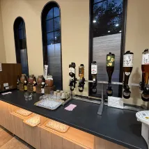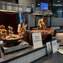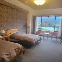 The hotel offers a drop-off service to the JR station. While it's quite close, this service is incredibly helpful when you have a lot of luggage. Our room offered excellent views of Mount Yufu. The absolute highlight was dinner: there was a vast selection of seafood, beef, and sushi, and most importantly, everything was delicious. They also had plenty of fresh fruit and sake. Additionally, drinks and snacks were available.