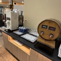 Complimentary refreshments are available from 3 PM until 10 AM the following day, including a selection of beverages, ice cream, snacks, tea, and coffee. Beer and other alcoholic drinks are also offered in the evenings.