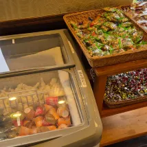 The restaurant offers buffet breakfast and dinner; the food is good, and there's a wide selection of drinks.