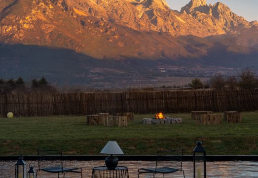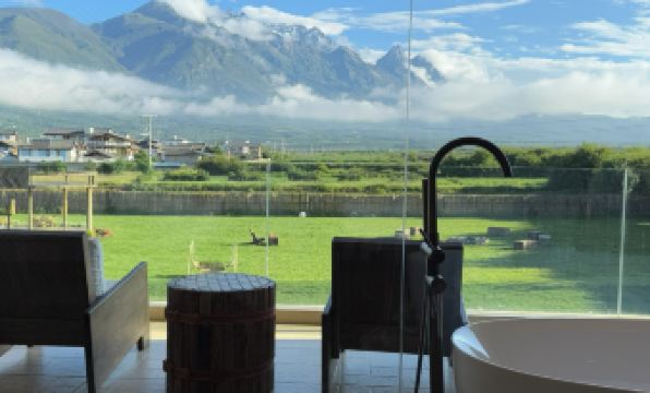 **Location:** The hotel is right near Baisha Ancient Town, but it's not nestled among a bunch of other buildings. The view from the rooms is completely open green space, with Jade Dragon Snow Mountain in the distance, totally unobstructed.