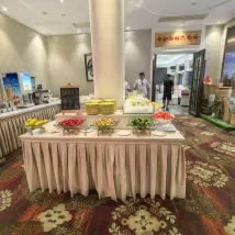 The room was great and the service was excellent. We were welcomed with complimentary fruits and four bottles of Wahaha water in our room. Breakfast was exceptionally good and I highly recommend it. We also had dinner at the same place as breakfast; the food was delicious and offered great value for money, with every dish being a standout. The surrounding area is very vibrant, featuring various shopping malls, making it super convenient for a stroll or some shopping.