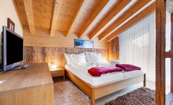 Beautiful, comfortable, luxurious chalet "Rütschi", 5 storeys, built in 2008. 7 apartments in the property. In the district of Steinmatte, 500 m from the centre, in a quiet position, south facing position. In the house: WiFi, sauna, steam room, spa area, lift, storage room for bicycles, storage room for skis, central heating system. Grocery 100 m, supermarket 550 m, restaurant, bakery 100 m, 8 minute walk to the centre, bus stop "Kirchbrücke" 100 m, railway station "Bahnhof Zermatt" 900 m. Mountain railway 700 m, ski rental 100 m, ski bus stop 150 m, ski school, children's ski school 500 m. Please note: baby equipment on request. Additional accommodations can be booked. 4-room apartment 123 m2 on 2 levels on 3rd floor. Luxurious and cosy furnishings: 1 double bedroom with 1 double bed and TV. Living/dining room with open-hearth fireplace, dining table, TV, radio, CD-player and DVD. Exit to the balcony, south facing position. Open kitchen (oven, dishwasher, 4 induction hot plates, toaster, kettle, electric coffee machine, Capsules for coffee machine (Nespresso) extra, raclette grill, fondue Set (cheese)). Bath/WC, hydro massage bath. On the lower ground floor: 1 double bedroom with 1 double bed (180 cm, length 200 cm), TV. Exit to the balcony, south facing position. 1 room with 2 beds (90 cm, length 200 cm), TV. Bath/WC, hydro massage bath. Balcony. Balcony furniture. Beautiful view of the mountains. Facilities: safe, hair dryer. Internet (WiFi, free). Please note: non-smokers only.