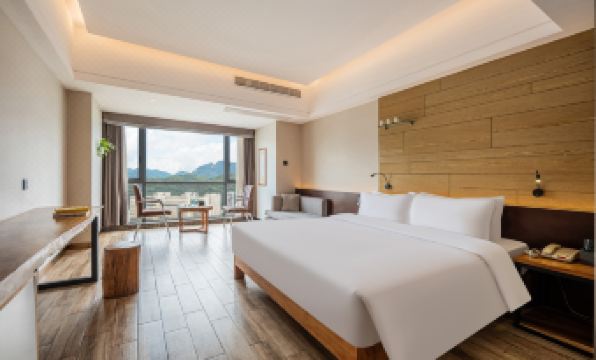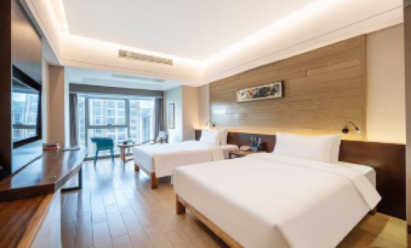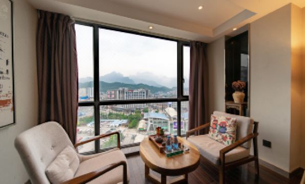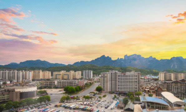 1️⃣ I had many cheaper hotel options, but I chose this one thinking it would be good. In reality, it's just an apart-hotel occupying two floors (17th and 18th), with no lower floor options. The front desk is also quite inconspicuous. Frankly, 270 CNY a night is overpriced. The description mentioned views of Tianmen Mountain, and you could pay an extra 10 CNY for a 'high-floor view.' However, all rooms are on high floors, which feels misleading. There's no view to speak of; tall buildings block the sight from the bed, and you can only vaguely glimpse a tiny sliver of the mountain.