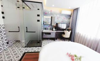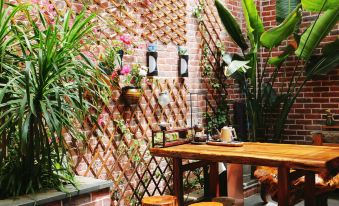 沒有想到城市裡還有這麼一個幽靜美麗的地方,古香古色的門廳,進入大廳就像到了花園裡一樣,還可以坐在花園裡喝茶,美女老闆人很好還送了點水果給我,前台服務也很棒,房間裏乾淨衞生空氣清新,無線網絡連接也很方便,直接掃碼就能連接,網速也很快。