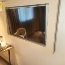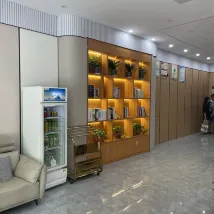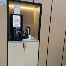 There’s a nice waiting area with free drinks at the front desk. The rooms are spacious enough and have a nice smell .