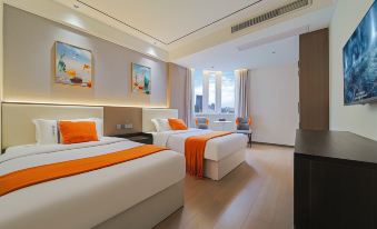 房間面積大,兩張床也很大,環境好,智能系統用起來很方便,離購物的地方也很近。