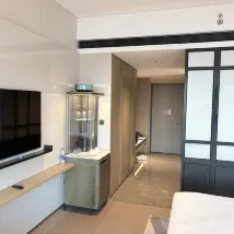 Facilities: The room type delivered exactly as pictured, and the view was superb. However, I'd suggest the hotel avoid placing this room type on lower floors, as elevation significantly impacts the panoramic view. The gym is fully equipped with Technogym machines throughout, which are comfortable and user-friendly, though one of the dumbbell racks was missing a pair of weights. Inside the room, the living area, bedroom, and bathroom can be fully isolated from each other, ensuring a peaceful sleep at night with no light disturbance. Both Samsung 4K TVs support HDMI and screen mirroring, offering complete freedom for gaming and binge-watching – absolutely perfect! The living room is also equipped with a Bose 550 soundbar, providing an immersive audiovisual experience. The room distribution on each floor is well-planned, with four elevators serving 16 rooms, effectively minimizing congestion during peak times.