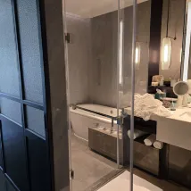 🚿 The bathroom had excellent dry/wet separation, fantastic water pressure, and instant hot water. I was pleasantly surprised to find that the premium toiletries were orange blossom scented – so soothing!