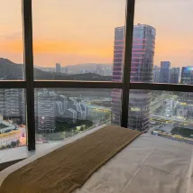 The room was well-equipped, and all the disposable toiletries were in perfect condition. I didn't check in until after 10 PM, but the air conditioning had already been turned on, making the room very cool and comfortable. There was a refrigerator, and the bed was very soft. We also purchased Chimelong tickets through them, which were cheaper than on the official website. I accidentally left some belongings behind when I checked out, but the owner was very kind and promptly helped mail them back to me. The view was also quite good.