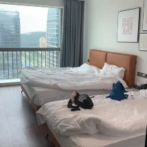 The bed in the room was too soft for my liking, making it uncomfortable to sleep. However, the location is very convenient for getting to Hengqin and Macau. The room itself was relatively clean, though there's still room for improvement. Unfortunately, there was a strong smell of garbage in the first-floor elevator area.