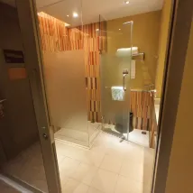 The showerhead had strong pressure, and the drain was fast, which is a big plus.