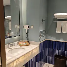 The room was great, very close to Ocean Kingdom, just a five to ten-minute walk away. It was also near two theaters and had nice decor. Breakfast was good and varied, and the room was clean. They provided a high chair and a toilet seat for children. When we asked the front desk, they even offered a baby bathtub and a playpen. There's also a paid foot massage machine, which was really useful after a long day of walking. I'd definitely stay here again.