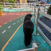 The hotel features two small animals, an alpaca and a pony, which guests can visit. The hotel isn't too far from Ocean Kingdom and Spaceship Park, but it's not super close either; it still takes about six or seven minutes to walk. However, there's a shuttle bus, so if you're tired, you can take it directly to the entrance.