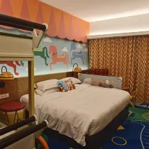 The hotel kindly upgraded us to a family room, and my son was absolutely thrilled with the bunk beds. They've recently introduced a paid self-service laundry service, which is quite handy. The hotel breakfast was decent. We booked the kids' two-park tickets through the hotel, which included an hour of early admission. However, it was quite disappointing that most attractions weren't open yet during that time. The hotel's location is excellent, making it incredibly convenient to get around. The park grounds are beautiful.
