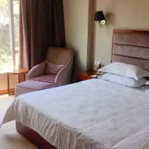 The hotel is well-located, close to the main road, and parking is convenient. The surrounding area is pleasant, the rooms are spacious, and the bathroom features a wet/dry separation.