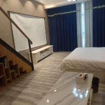 I booked an hourly room with a large bed. I arrived a bit early, and the room wasn't ready, but the front desk staff kindly upgraded me to a duplex. Compared to typical chain hotels, this place offers excellent value for money. The rooms are spacious, and the small duplex has a unique charm. The front desk service is also great, and the overall environment is much better than hotels costing 300-500 yuan. It's particularly suitable for two or three friends or families traveling together. Parking and getting around are also quite convenient. Next time I visit, I'll book a full-day room and invite more friends.