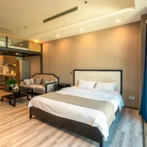 My stay at this apartment hotel truly exceeded my expectations! The room design was minimalist and modern. I was particularly impressed by the thoughtfully designed lighting system; the soft glow created a warm and comfortable ambiance, making the room feel incredibly inviting and cozy. The cotton bedding was wonderfully soft and comfortable, and the entire place was spotlessly clean. The front desk staff were incredibly warm and attentive, and even the corridors smelled faintly of a pleasant fragrance. Location-wise, it's very convenient, with taxis easily accessible right downstairs. The room itself was spacious, boasting floor-to-ceiling windows that let in plenty of natural light. Overall, fantastic value for money. It's an excellent choice for both business travelers and those on a leisure vacation. I highly recommend it!