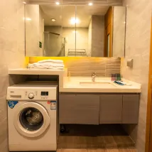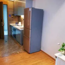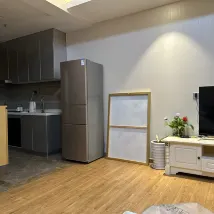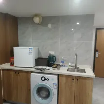 I highly recommend this hotel apartment; it's genuinely excellent. The king-sized room is a spacious 60+ square meters and comes fully equipped with a smart TV for screen casting, a washing machine, a refrigerator, and an induction cooktop in the kitchen. Everything you need is right there. What's more, a vibrant commercial district is just downstairs, offering a complete range of dining, entertainment, and shopping options.