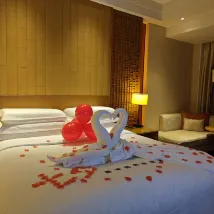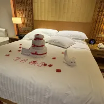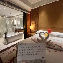 This time, it was our 11th wedding anniversary, and the hotel arranged special anniversary decorations for us. Our flight was delayed by two hours, and our Didi driver was a novice, only driving 70 km/h on the highway. It was also Qixi Festival that day, so many couples were checking in. Despite these hiccups, the hotel had already turned on the AC and the lighting and ambiance were perfect upon our arrival. We truly appreciate their thoughtfulness! 🙏💖
