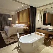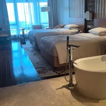 I've stayed at many hotels, and while this is a standard Marriott property, the staff's service truly impressed me. The day before check-in, they called to confirm my arrival time and room preferences. Upon arrival, the doorman proactively helped with my luggage. They kindly upgraded my room type when availability permitted and even offered a late check-out. Even the housekeeping staff were exceptionally well-trained; they'd always greet me with a cheerful 'good morning' even when just dropping off a bottle of water. It's these thoughtful details that truly make a difference. The room was also impeccably clean. I had such a wonderful stay, and I will definitely choose this hotel again the next time I'm in Zhuhai. Thank you!